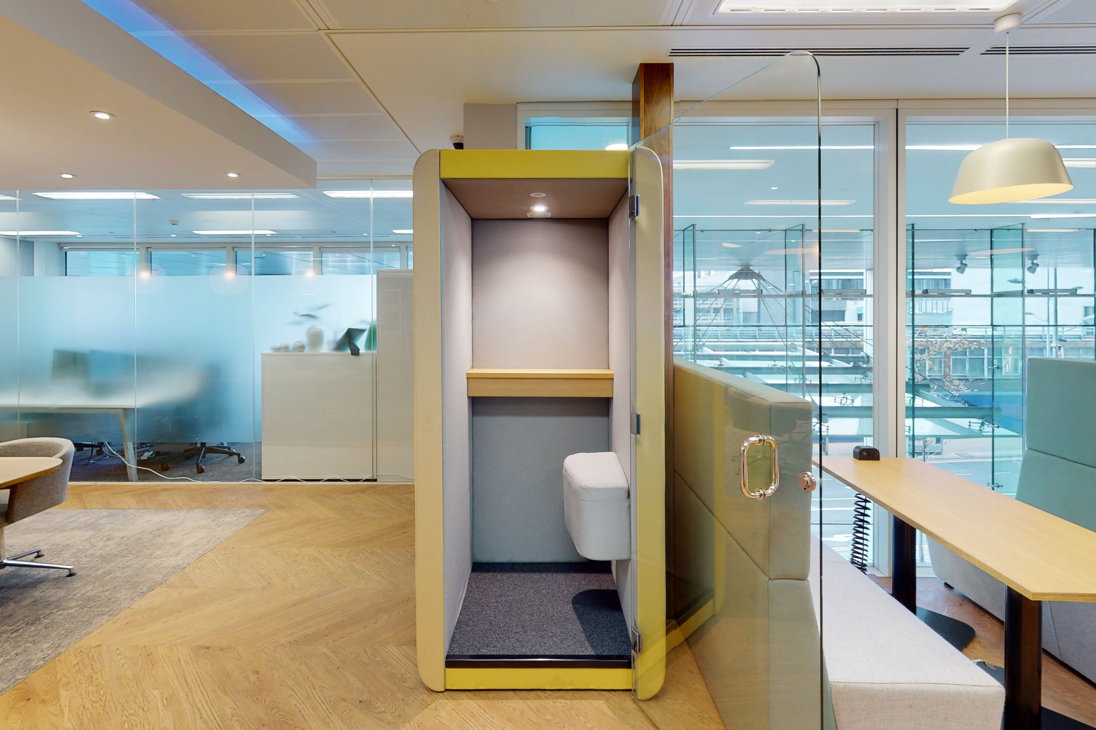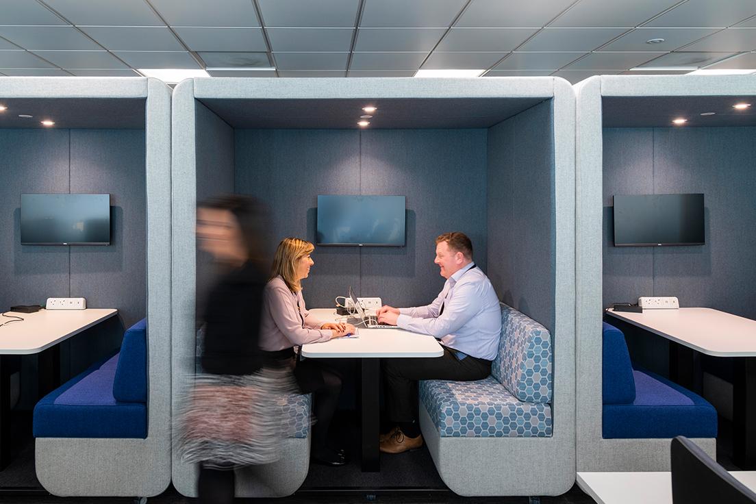 JDD’s Bob and Penelope meeting pods, offer instant comfort and privacy in beautifully upholstered fabrics. Ideal for private calls and conversations away from a noisy office, no partition wall required.