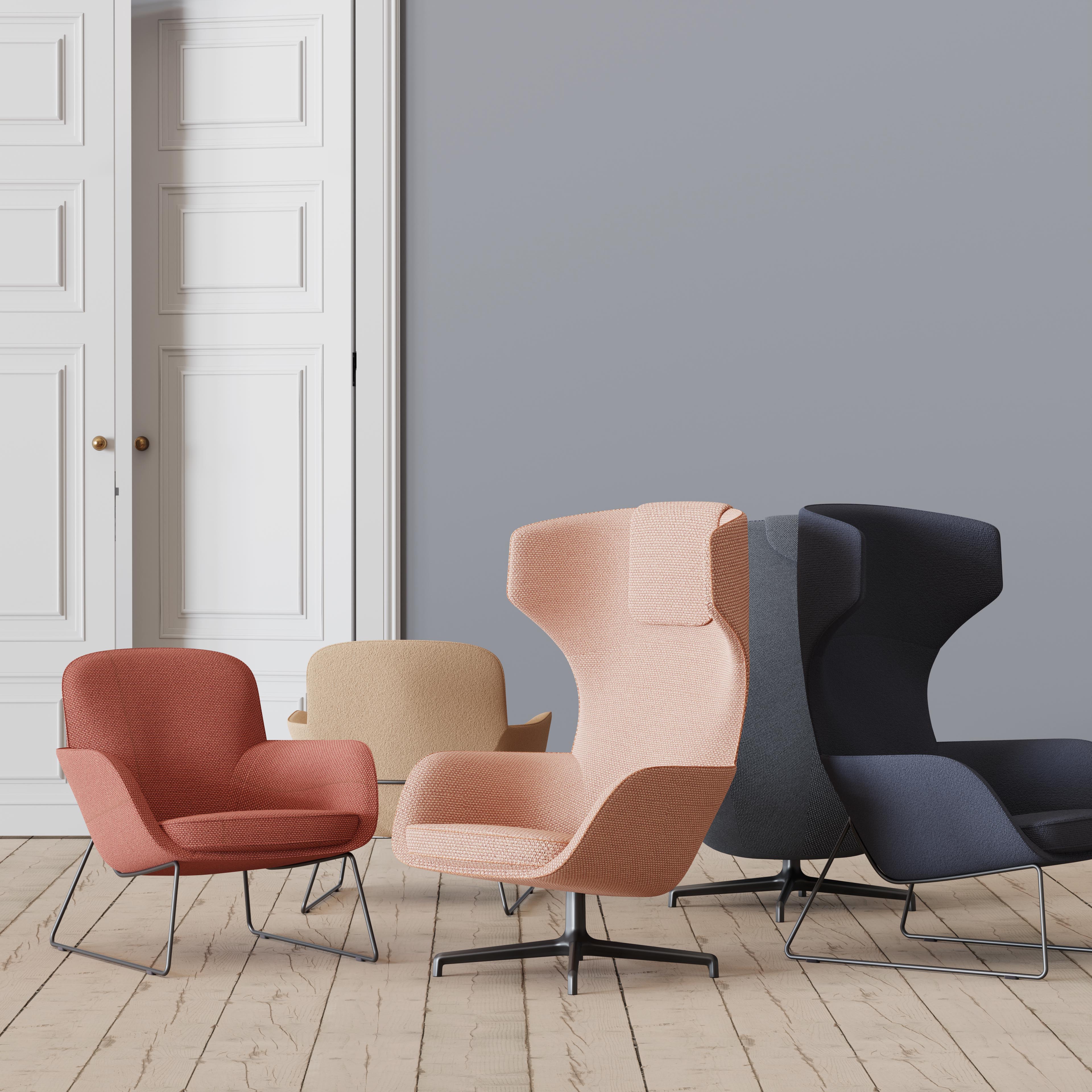 Chairs with a high back elevate comfort whilst helping to contain sound, dampening the travel of conversations or meetings. Think of a cluster of Pledge’s Toro chairs as a quiet corner that can be created anywhere you need focus or calm.